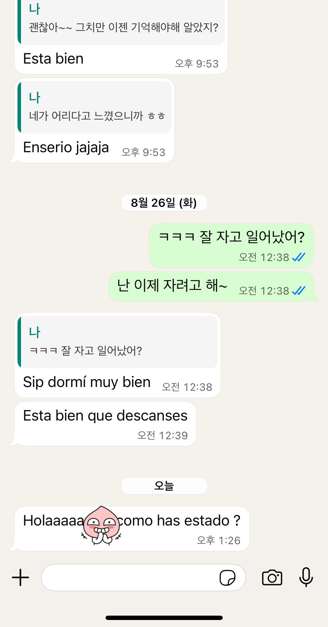 슬슬 스페인어 번역기 돌리기 귀찮아서 한국어로 대답하는데