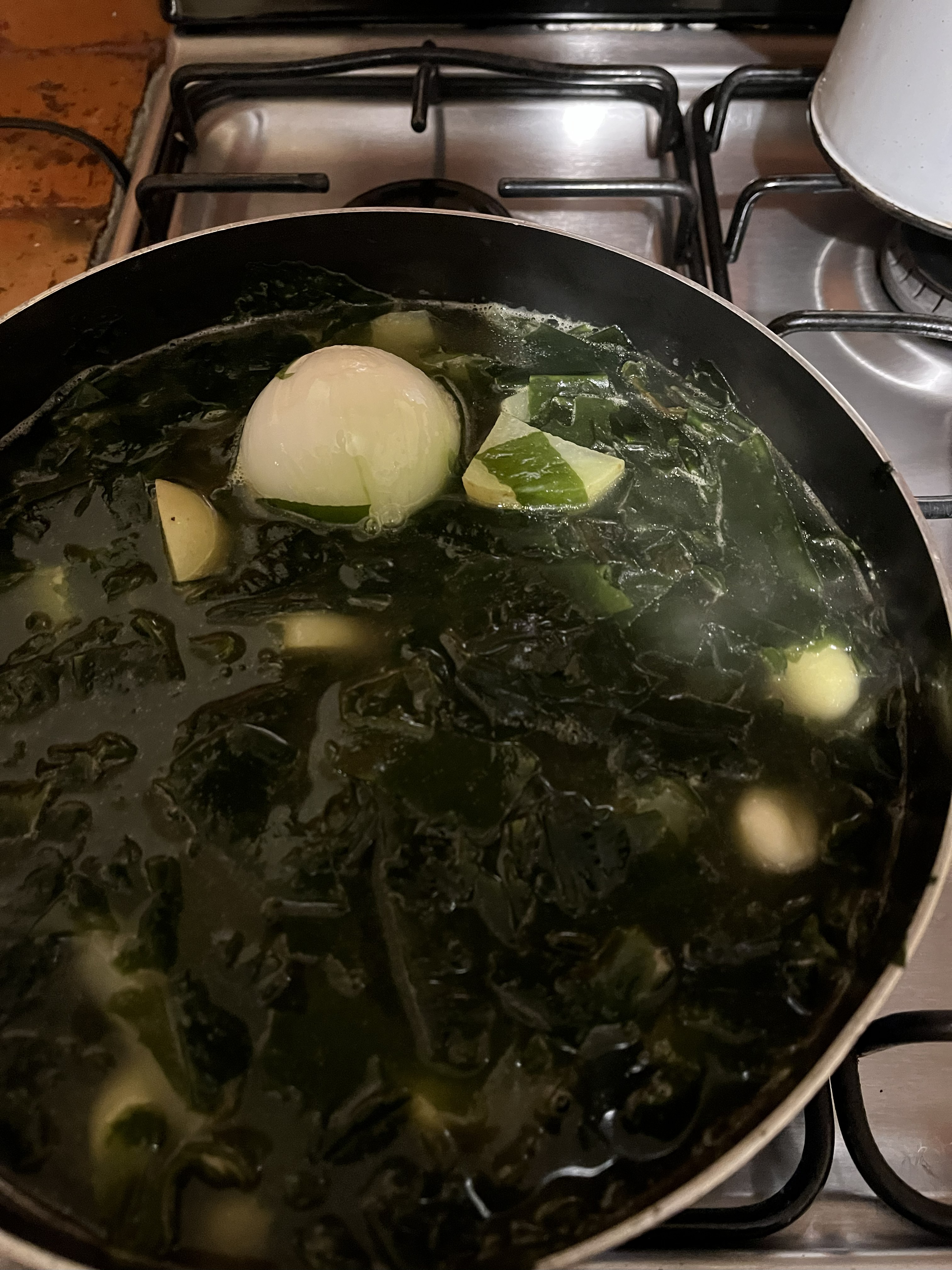동행이 선물 준 자른미역으로 미역국!