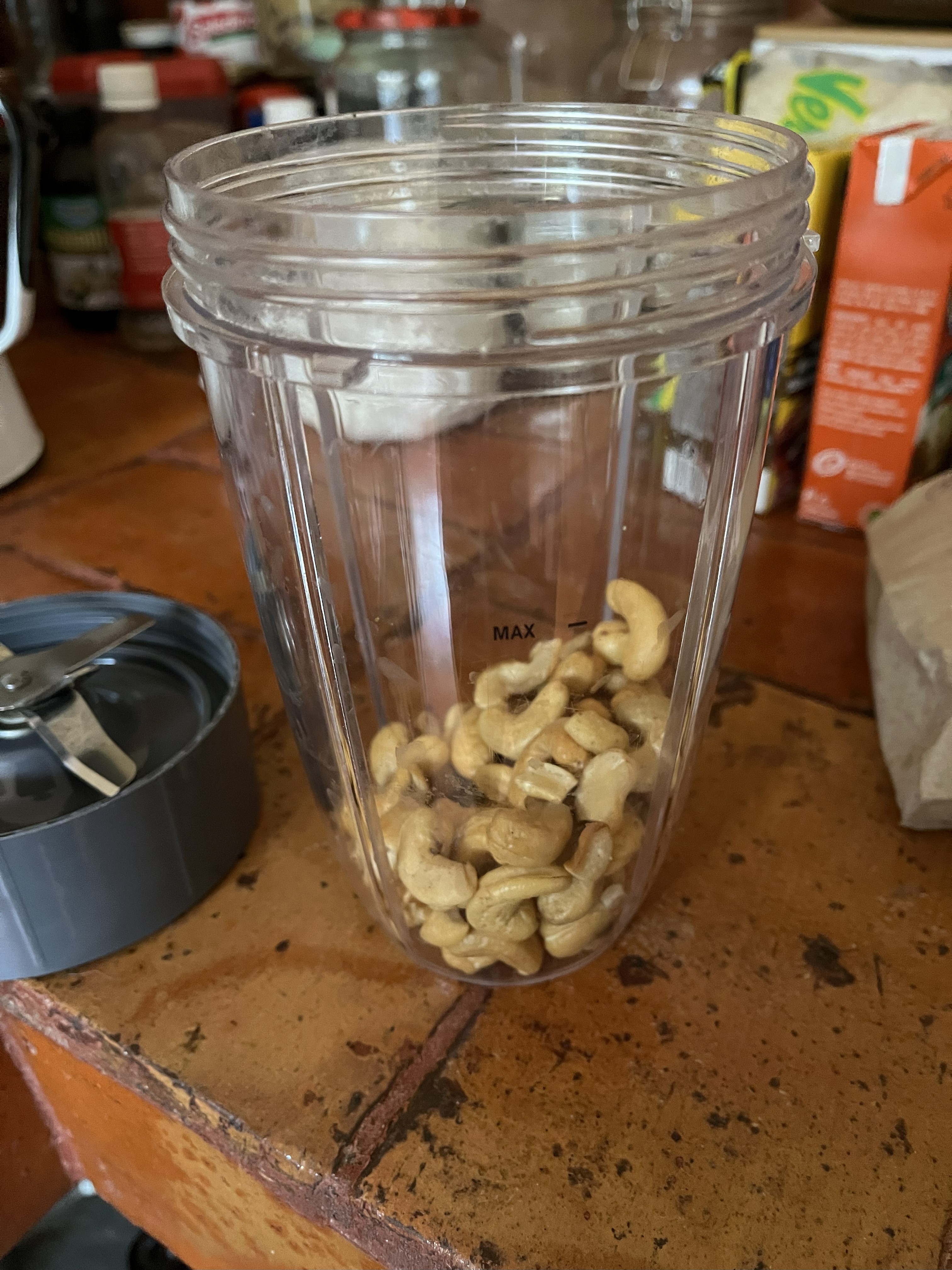 숙소에 믹서기 있어서 ㅎㅎ 구운 캐슈넛 100그램 갈아주고